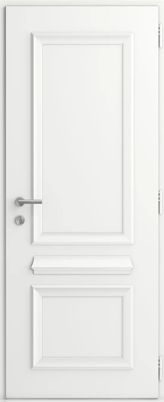 Porte d’entrée pleine Cella de la gamme Surface, au style traditionnel élégant. Son design mouluré affirme une esthétique raffinée, idéale pour les façades classiques. Avec une épaisseur de 85 mm, elle offre une excellente isolation thermique et un haut niveau de sécurité, tout en valorisant l’entrée de votre maison.