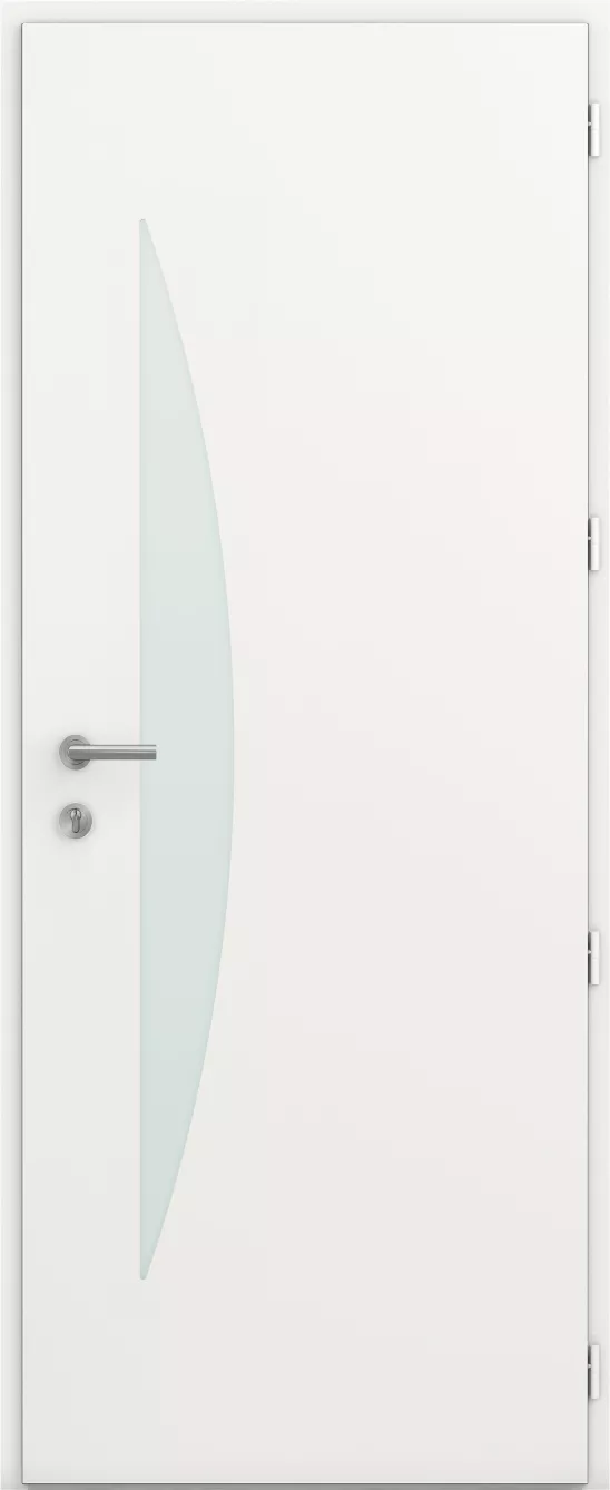 Sans motif décoratif, cette porte semi-vitrée joue la pureté des lignes et la douceur des surfaces.