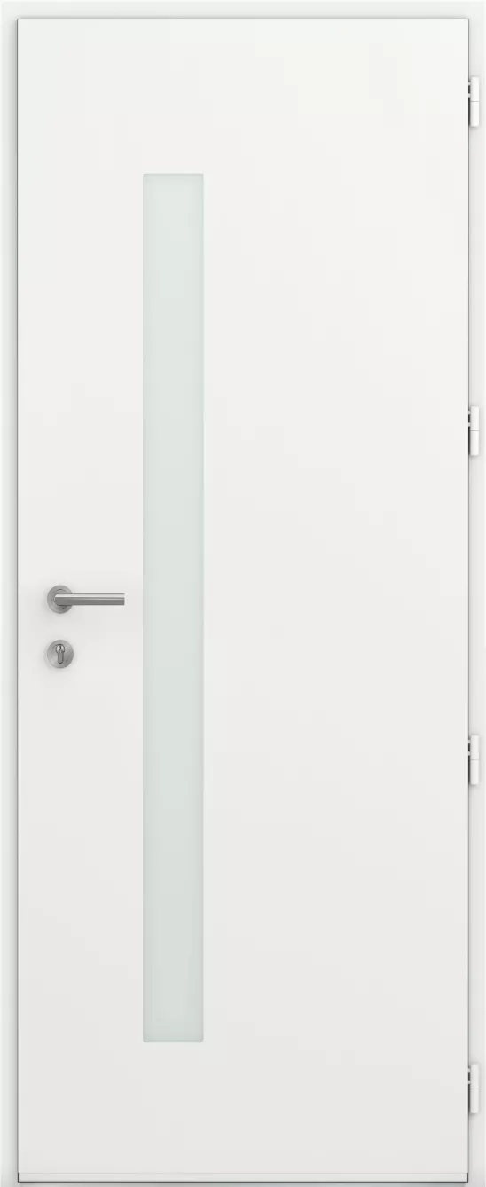 La porte d’entrée Lagone de la gamme Caractère séduit par son design graphique très contemporain. Son vitrage vertical étroit est encadré de multiples inserts en aluminium horizontaux et verticaux, formant une structure géométrique élégante. Ce jeu de lignes en aluminium apporte un style résolument moderne et structuré. D’une épaisseur de 85 mm, cette porte en aluminium assure confort, isolation et sécurité tout en valorisant la façade de votre habitation.