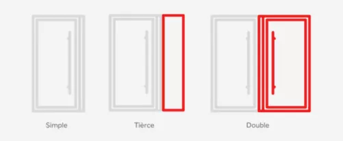 Personnalisez votre porte d’entrée avec plusieurs options d’ouverture : simple, double ou tiercée , pour qu’elle s’adapte parfaitement à votre espace et à vos envies.