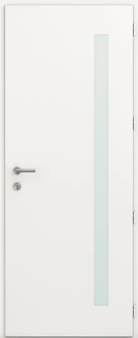 À l’extérieur, un motif décoratif usiné apporte du relief et du style. À l’intérieur, la sobriété prend le pas avec une surface sans motif. Un vitrage fin vient jouer avec la lumière pour révéler toute la personnalité de cette porte semi-vitrée.