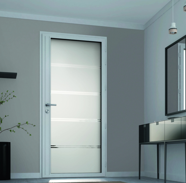 Les motifs effet miroir, imprimés sur vitrage sablé et visibles des deux côtés, apportent une touche contemporaine et lumineuse à votre porte d’entrée Stévia. Un jeu de reflets subtil qui sublime votre intérieur comme votre extérieur.