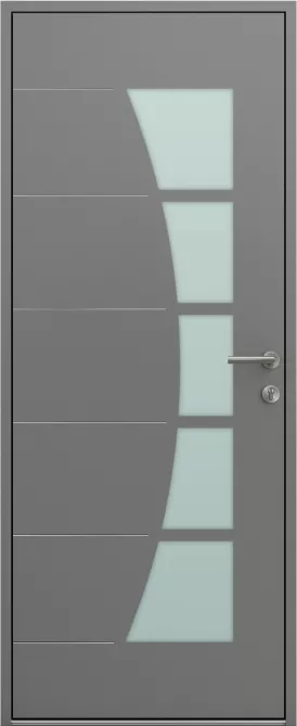 Vitrages aux dimensions variées pour un style unique, associés à des usinages décoratifs extérieurs et une simplicité intérieure. Une porte aluminium semi-vitrée qui allie élégance et douceur.