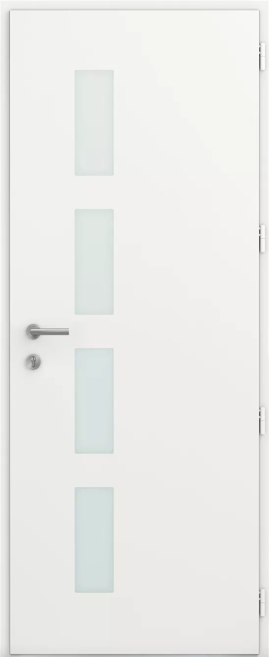 Avec son design à la fois structuré et moderne, la porte d’entrée Tibesti, issue de la gamme Caractère, se distingue par quatre vitrages rectangulaires verticaux disposés en colonne centrale.