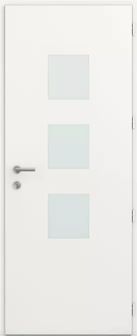 À l’intérieur comme à l’extérieur, une surface épurée sans motif, sublimée par trois vitrages centrés qui jouent avec la lumière. Une porte semi-vitrée au design moderne et harmonieux.