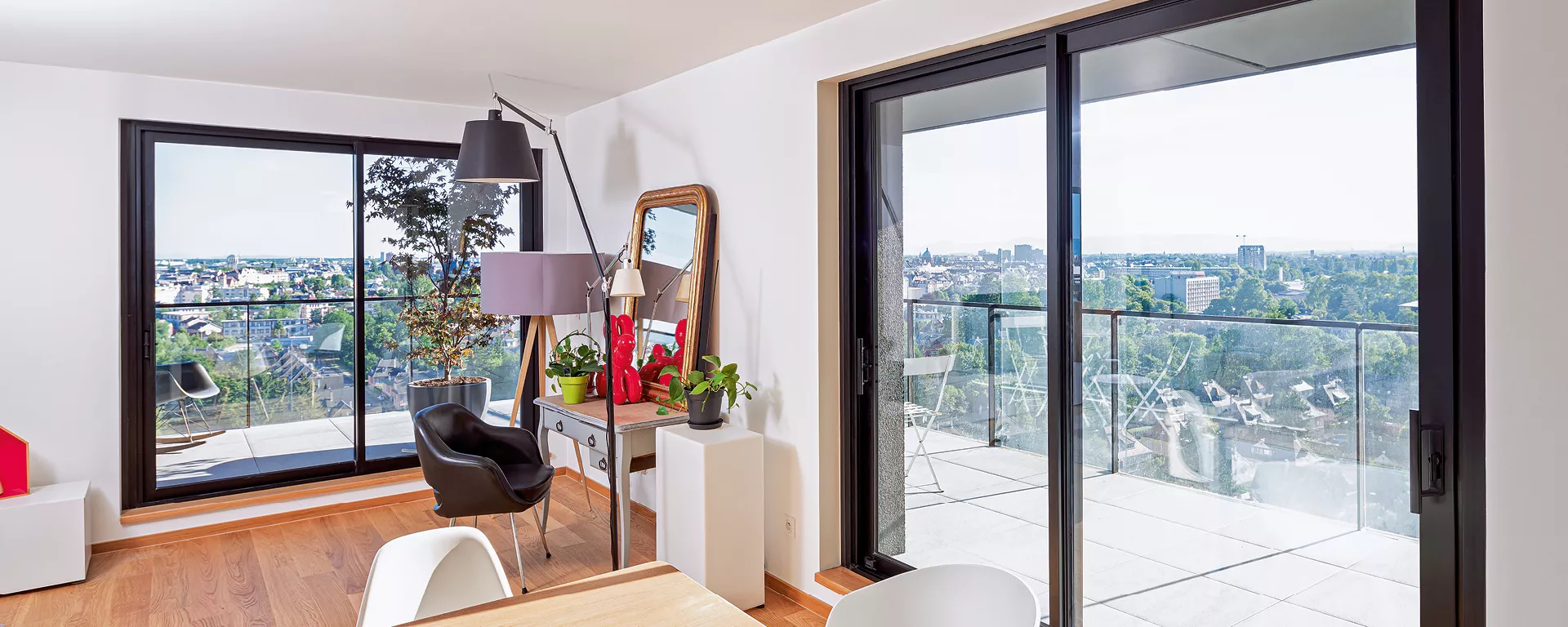 Situé dans le nouveau quartier strasbourgeois Archipel, l’appartement d’Emmanuelle offre des perspectives multiples sur le centre-ville de la capitale de l’Europe. Un panorama unique mis en scène par des baies coulissantes dont la discrétion et l’élégance des lignes subliment ce promontoire où la lumière règne en maître. En multipliant les ouvertures, Emmanuelle profite ainsi d’un maximum d’ensoleillement pendant toute la journée !
